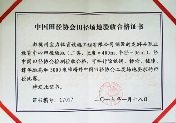 近日,由杭州寶力體育設(shè)施工程有限公司承建的龍游縣職業(yè)教育中心400米田徑場(chǎng)正式落成,田徑場(chǎng)的塑膠跑道和人造草足球場(chǎng)地完全按照國(guó)家標(biāo)準(zhǔn)田徑場(chǎng)進(jìn)行建設(shè),順利通過(guò)了中國(guó)田徑協(xié)會(huì)專家驗(yàn)收。同時(shí),獲得了專家組和當(dāng)?shù)仡I(lǐng)導(dǎo)的一致好評(píng),成為龍游標(biāo)桿型場(chǎng)地,為龍游縣職業(yè)教育中心提供了健全的體育場(chǎng)地,讓更多人有機(jī)會(huì)擁有專門的體育訓(xùn)練的場(chǎng)地。