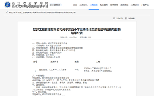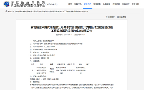 2018年7月11號(hào)中標(biāo)安吉縣第四小學(xué)田徑場(chǎng)塑膠跑道改造工程項(xiàng)目