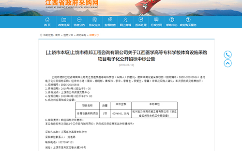 2018年8月13日中標(biāo)江西醫(yī)學(xué)高等??茖W(xué)校體育設(shè)施采購(gòu)項(xiàng)目公告