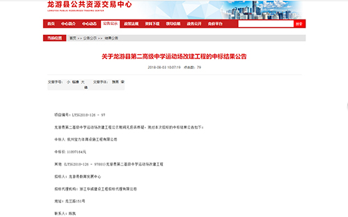 2018年8月3日中標(biāo)龍游縣第二高級(jí)中學(xué)塑膠運(yùn)動(dòng)場(chǎng)改建工程公告