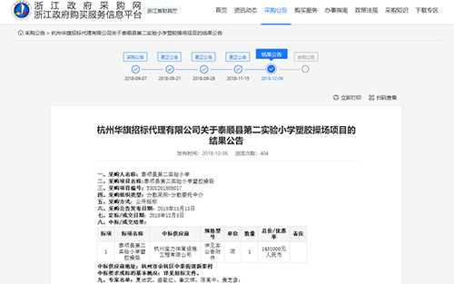2018年12月6日中標(biāo)泰順縣第二實(shí)驗(yàn)小學(xué)塑膠操場(chǎng)建設(shè)項(xiàng)目公告