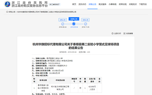 2018年9月4日中標(biāo)泰順縣第二實(shí)驗(yàn)小學(xué)籠式足球場(chǎng)建設(shè)項(xiàng)目公告