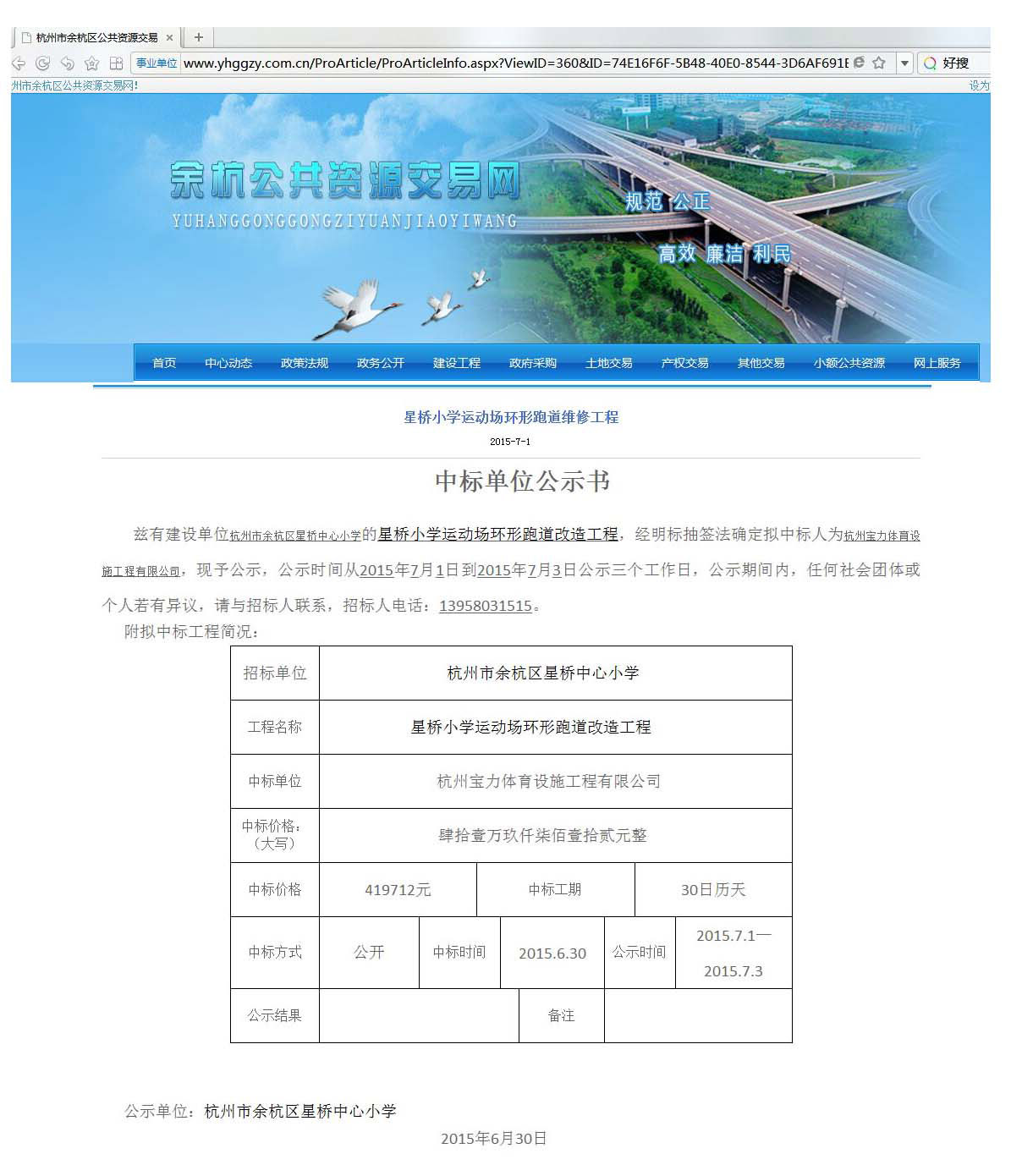 下一篇:杭州寶力體育中標浙江經(jīng)濟職業(yè)技術學院2015年室外球類場地改建項目