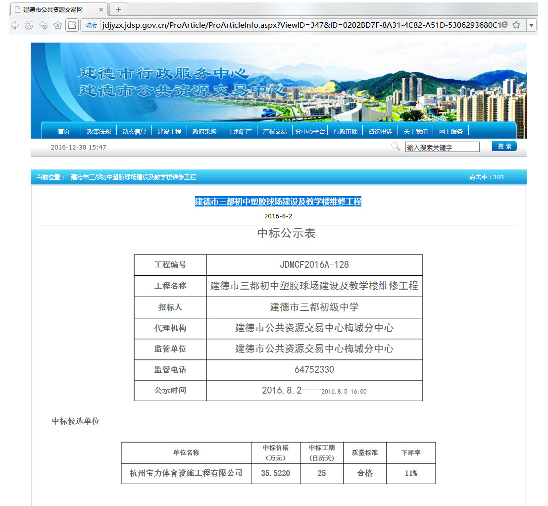 下一篇:2016年12月23日中標縉云縣職業(yè)中等專業(yè)學校、 縉云縣章村小學籃球場硅PU塑膠面層等采購項目(第二次)